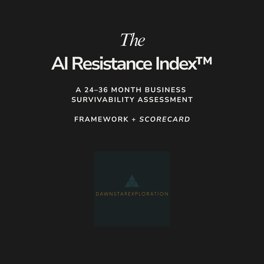 The AI Resistance Index™ is a decision framework designed to help founders, operators, and consultants evaluate whether a business idea can survive AI-driven commoditization over the next 24–36 months.